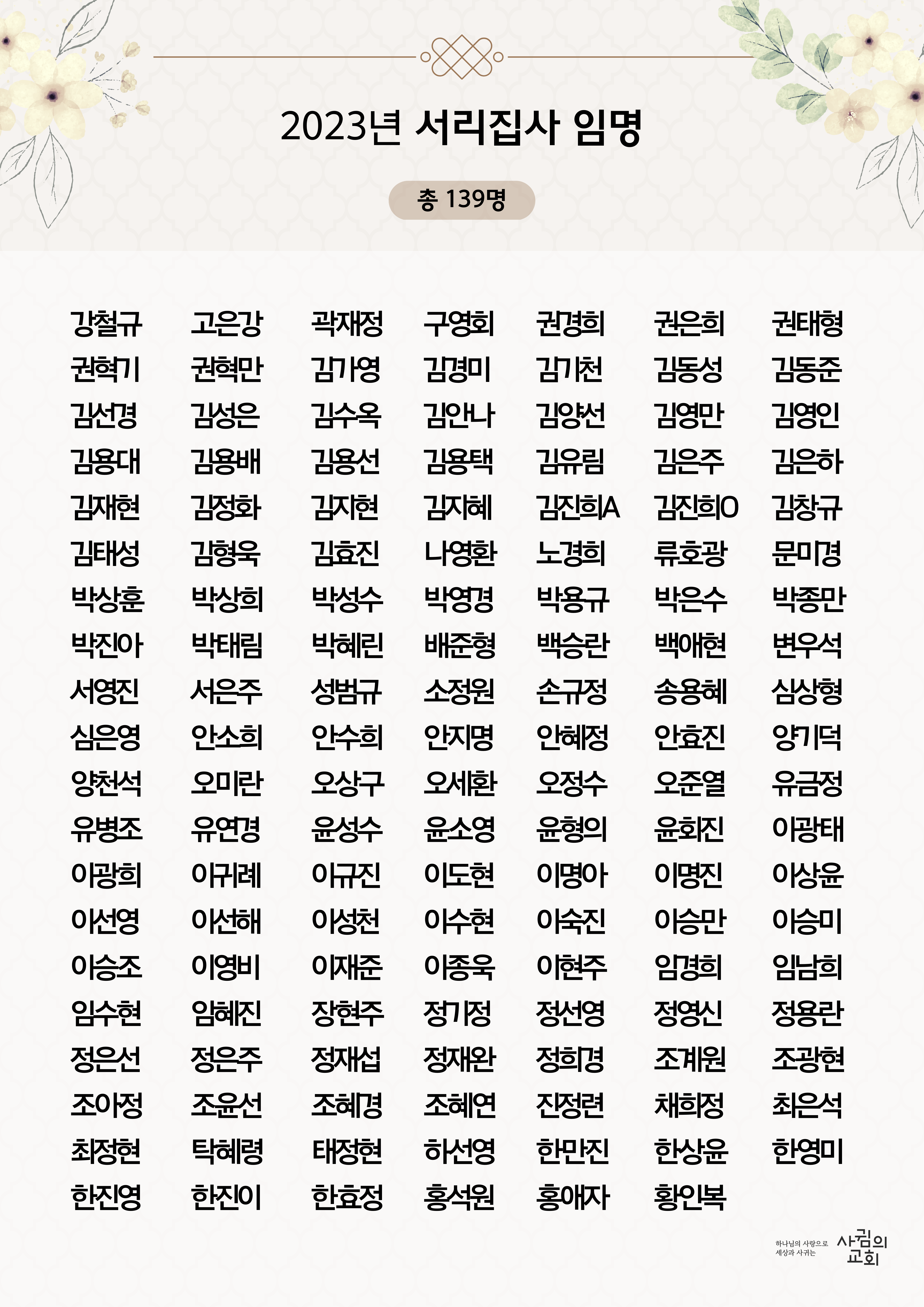 2023년 사귐의교회 서리집사 명단