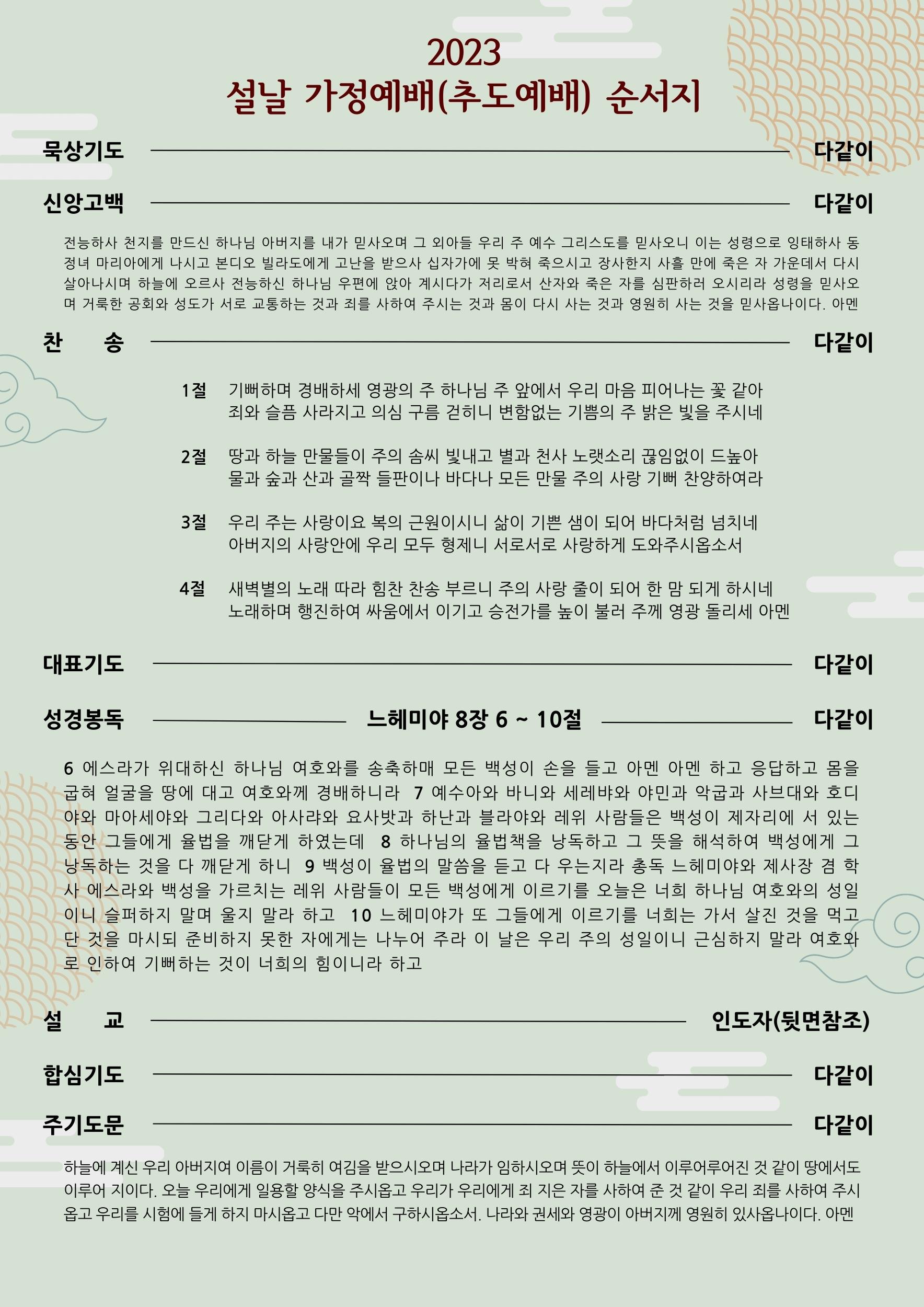 2023 설 가정예배 순서지
