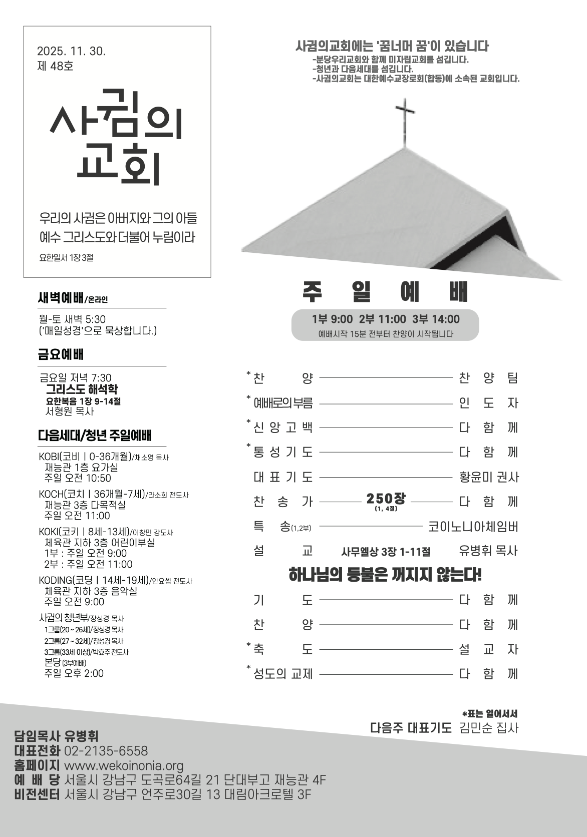 예배시간 안내